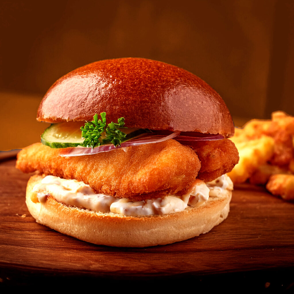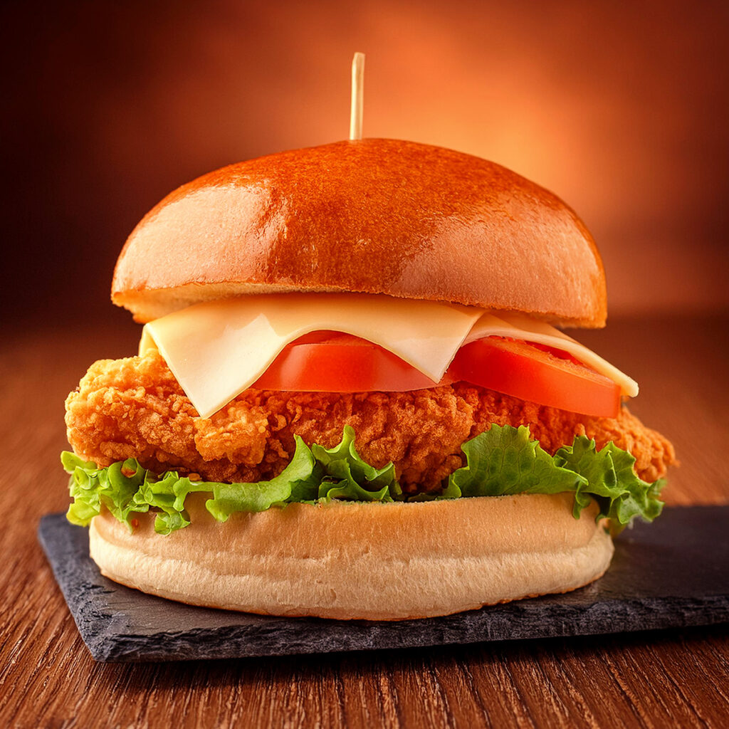 I used Adobe Firefly to generate burger and sandwich photography, then adjusted and retouched the images in Photoshop so they matched the brand’s warm, saturated color feel and worked cleanly in the poster and packaging layouts.